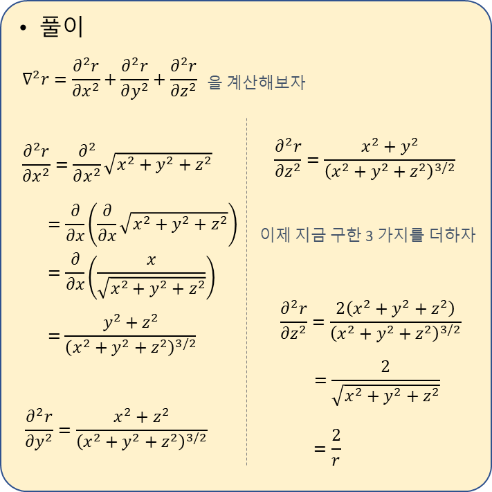 - 직각좌표계에서 r에 대해 라플라시안(Laplacian, ∇2) 직접 계산해보자.
