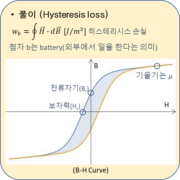 - 결국, 히스테리시스 손실(hysteresis loss)은 원자 및 분자들의 진동인 열에너지로 바뀜